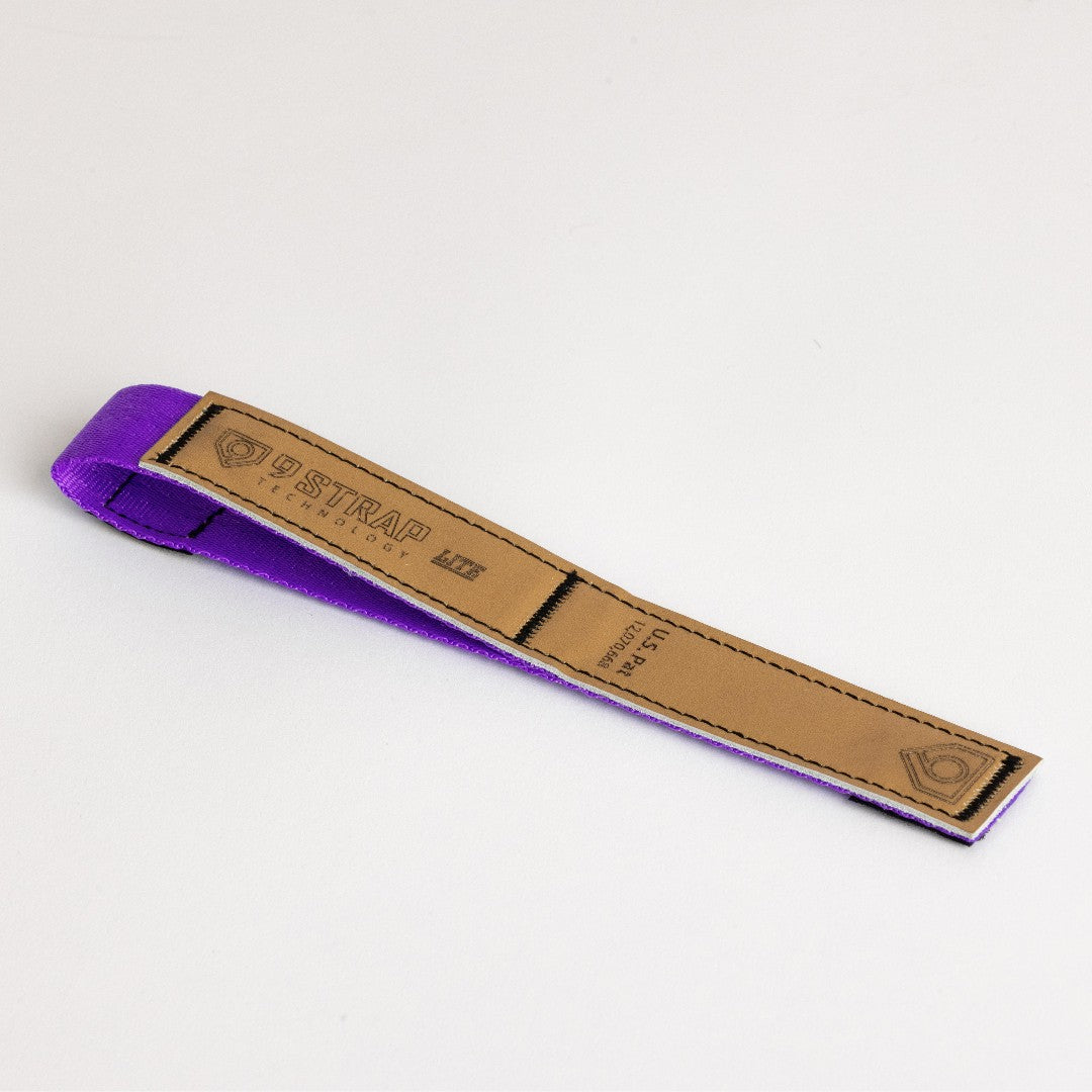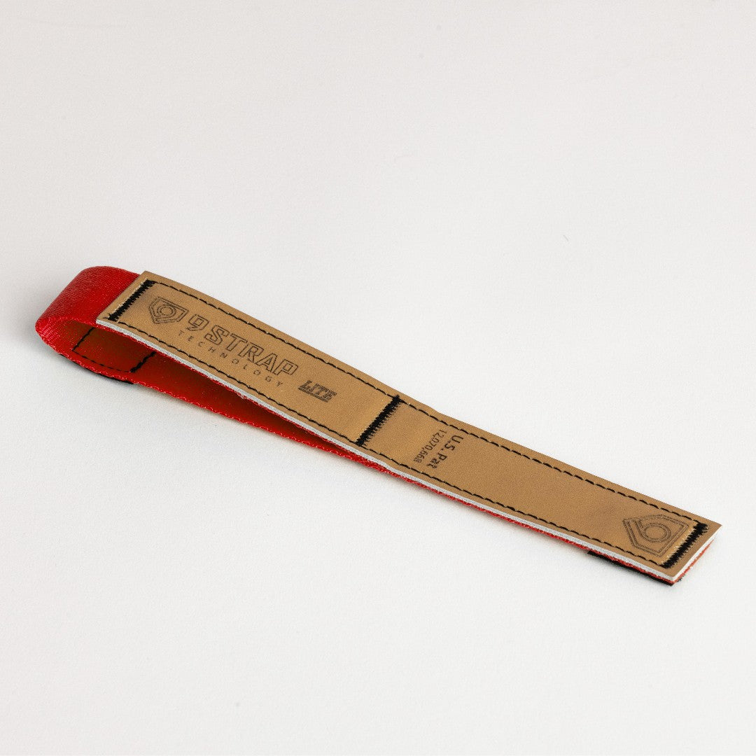 The Lite model is offered in multiple color options (tan leather w/ colored webbing) in both Youth and Adult sizes. The Lite model also includes a small 1” square piece of Velcro which allows the hitter to secure the strap in place when NOT in use.